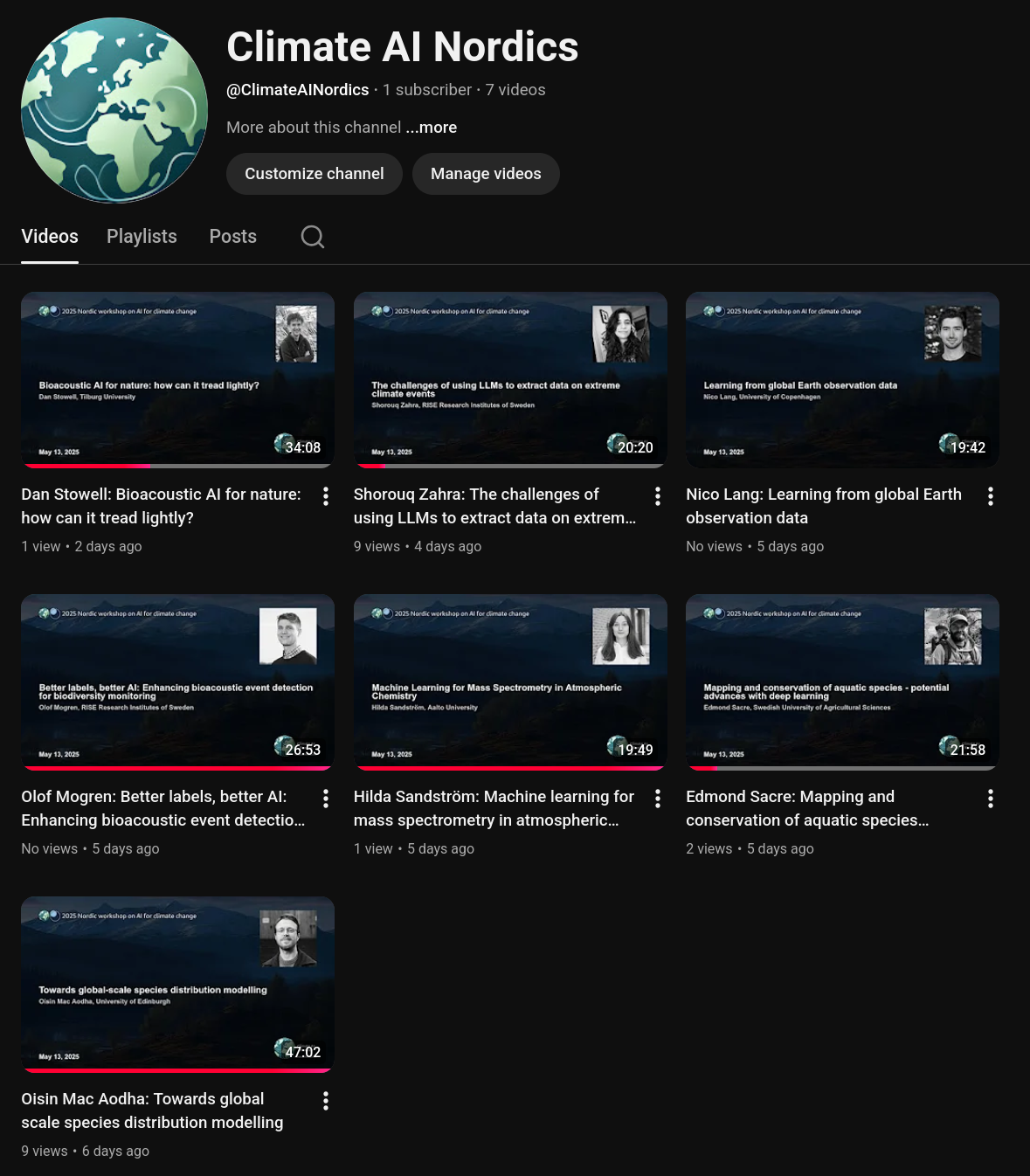 | • | 2025-11-25: Climate AI Nordics launches official YouTube channel (Read more) | ![]() |