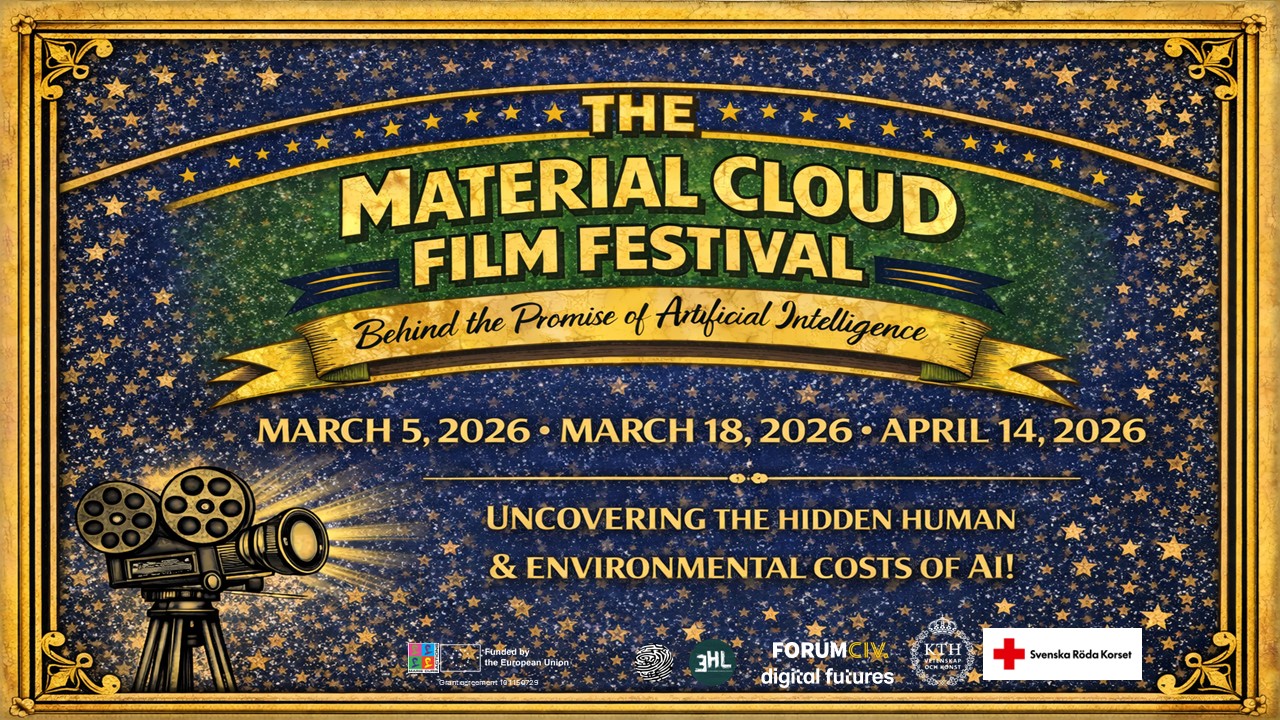 The Marie Skłodowska-Curie project LIBRA, supported by the KTH Environmental Humanities Laboratory, the Swedish Red Cross, ForumCiv, Digital Futures and the Centre for Anthropocene History proudly announce The Material Cloud Film Festival, a three-night film festival exploring the often unseen material realities behind artificial intelligence, including labour conditions, extractive supply chains, and power concentration.