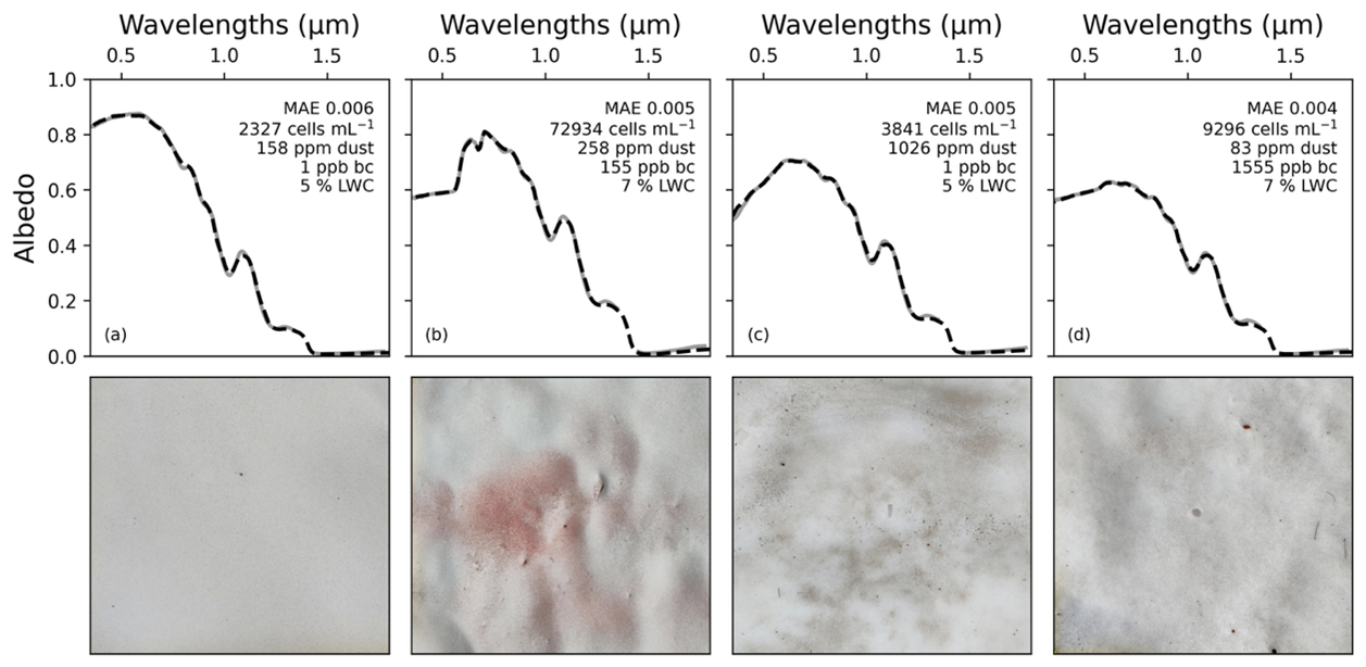 Snow albedo—the fraction of sunlight reflected by snow—plays a key role in Earth’s energy balance. When snow is contaminated by light-absorbing particles (LAPs) such as mineral dust, black carbon, or pigmented algae, its albedo decreases, leading to enhanced absorption of solar radiation. This process influences glacier mass balance and represents an important source of uncertainty in melt forecasts because it varies greatly in time and space, and remote detection methods able to identify the different types of LAPs are lacking.
